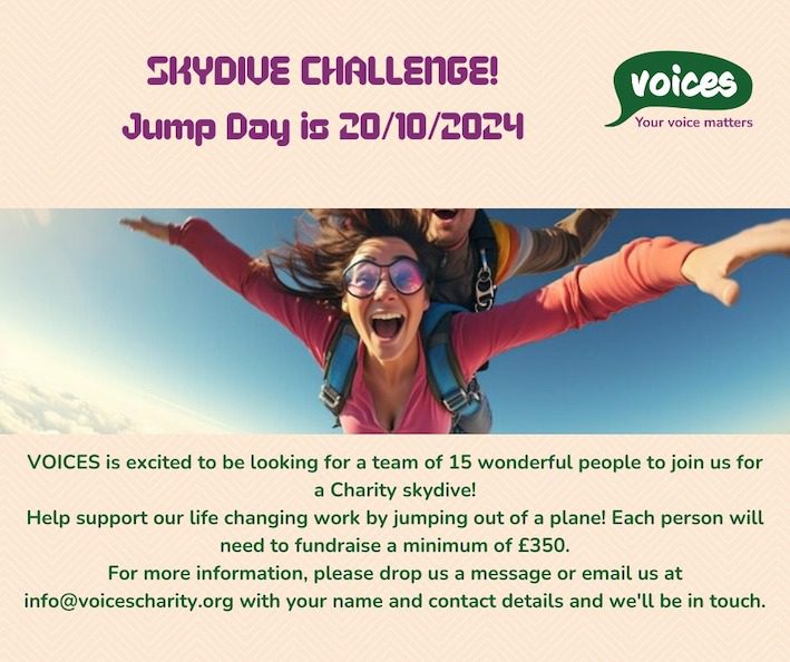 VOICES are looking for a team of wonderful people to join us for our Charity Skydive!
